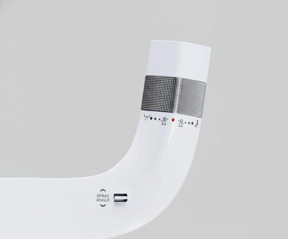 Những tính năng nổi trội: Thiết kế siêu mỏng lắp dưới nắp bồn cầu với vòi phun kép, vận hành không điện và dễ dàng điều chỉnh áp lực nước qua núm xoay cơ học